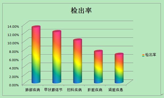 肺部疾病、甲状腺结节、妇科疾病、肝脏疾病、肾脏疾患。