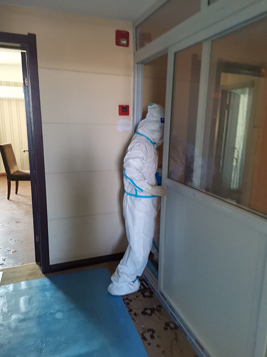 各分部抽调出精兵强将进驻隔离点,第一时间为进入隔离点的人员做好登记,并进行采集核酸、抽血、送饭等工作,保持全天候待命状态。