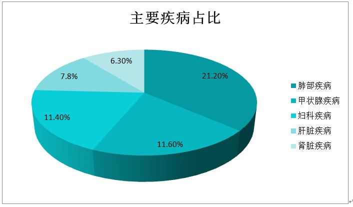 肺部疾病、甲状腺疾病、妇科疾病、肝脏疾病、肾脏疾病。