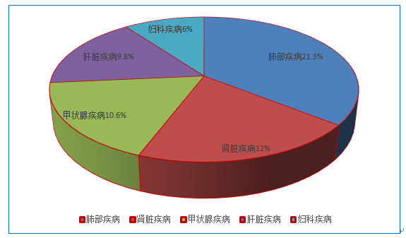 肺部疾病、肾脏疾病、甲状腺疾病、肝脏疾病、妇科疾病。